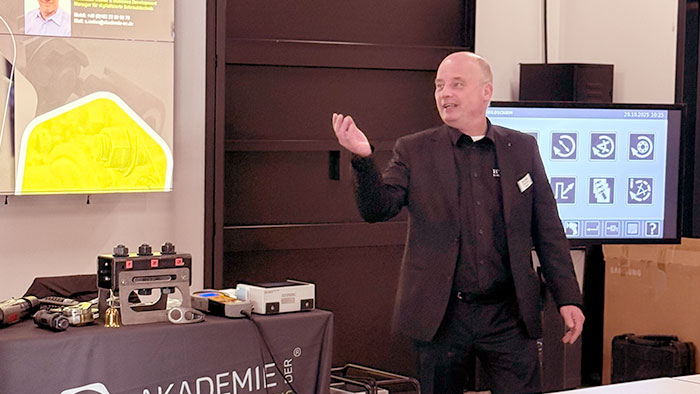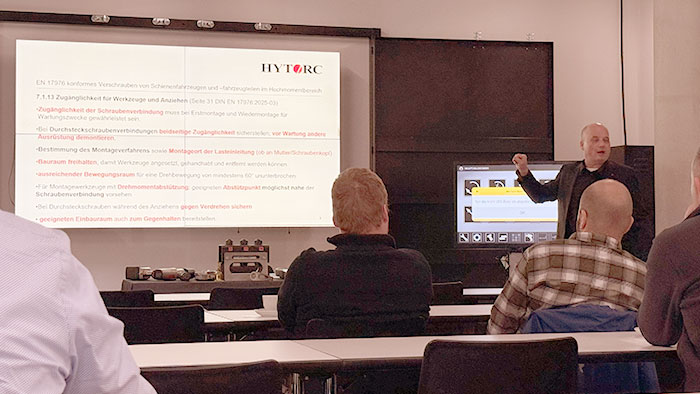 Parallel zur in München stattfindenden Messe „maintenance“ hat die Akademie der Schraubverbindung (AdSV®) erstmals ihr neues Format „Brunch & Learn“ angeboten. Im stylischen Ambiente der Motorworld München konnten sich Interessierte am Morgen des 29. Oktober informieren über die Novellierung der Norm zu Bahnanwendungen – Verschrauben von Schienenfahrzeugen und -fahrzeugteilen. Die AdSV® legte in kurzen Vorträgen dar, welche Änderungen die neue DIN EN 17976: 2025-03 beinhaltet und was dies konkret für das befasste Personal bedeutet. Selbstverständlich bietet die AdSV® entsprechende Schulungsinhalte um Monteure, Planer und andere relevante Mitarbeiter stets auf dem neuesten Stand zu halten. Abgerundet wurde die Veranstaltung, die sehr positives Feedback bei den Fachteilnehmern auslöste, durch Präsentationen der AdSV®-Partner HYTORC und HS-Technik. So konnten die Teilnehmenden auch praxisrelevantes Fachwissen für ihre weiteren Verschraubungsaufgaben mitnehmen.